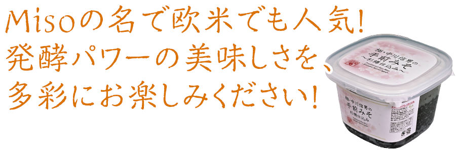 今や、欧米のどんな自然食品店でも手に入り、大手スーパーでさえも目にする「味噌」。一説によると、味噌に含まれるジピコリン酸という物質が放射能物質を吸着して排出する作用があるらしく、1986年のチェルノブイリ原発事故以降、ヨーロッパ諸国への輸出が急増しています。また、酵素を豊富に含む発酵食品としても見直されています。